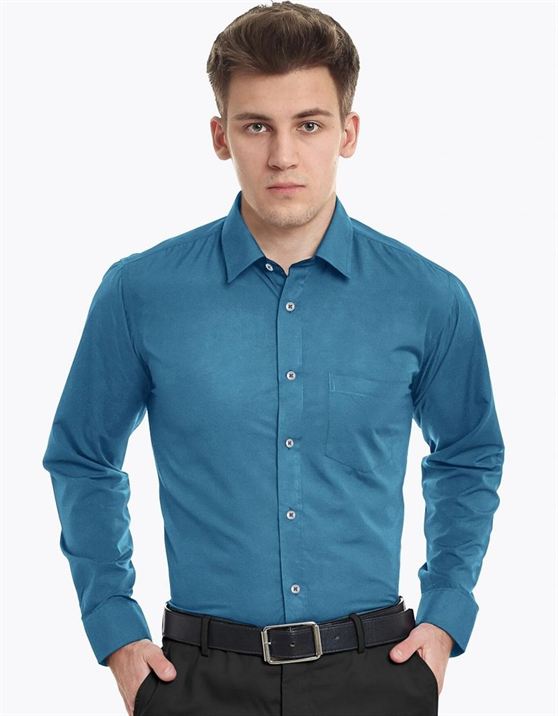 Peacock Blue Plain Cotton Full Sleeves Shirt